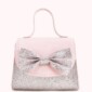 Mini cartera plateada brillante con chongo