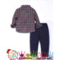Traje azul oscuro con líneas rojas navideño