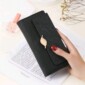 CARTERA NEGRA FINA CON BROCHE DE HOJA DORADA