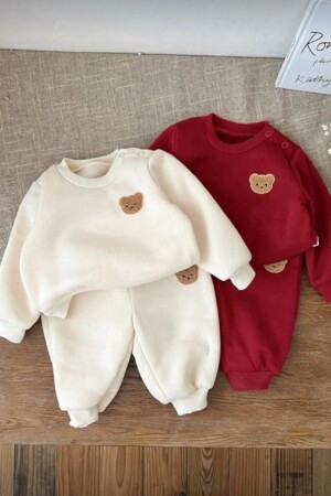 outifit de dos piezas de niño color rojo y blanco con botones de frente y tirantes